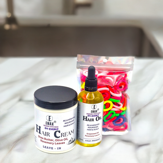 Children Care Pack1: ENAX Hair Cream, Hair Oil & Toddler's Hair Ties